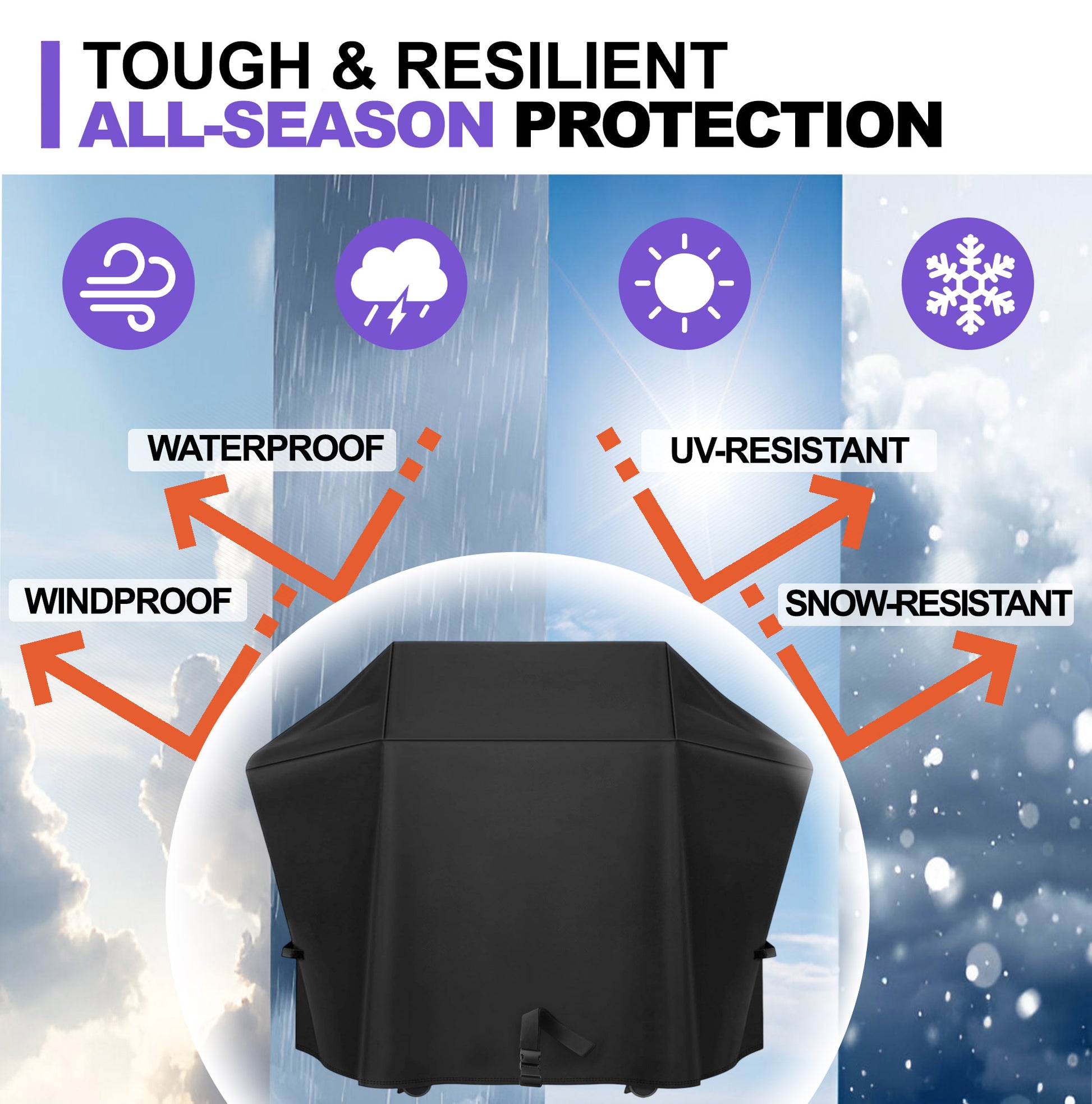 This grill cover is crafted from heavy-duty 600D Oxford fabric with a waterproof PU coating, making it thicker, stronger, and more durable than many standard grill covers. The reinforced material helps resist fading, tearing, and wear while providing excellent protection against rain, snow, dust, and debris.