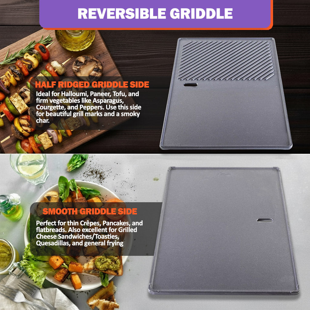 • Upgraded Design: Reversible - Smooth side for flat cooking + half-ridged side for grill marks; built-in oil drain hole for healthier results.